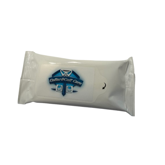 Discover our innovative solution for maintaining spotless shirt collars and cuffs. Our unique method effectively prevents stains by removing dead skin, oils, and dirt from the neck and arm areas, which accumulate throughout the day. Combined with our eco-friendly formulation and 100% organic cotton fabric, this ensures long-lasting freshness. No matter the weather or your work environment, our Wet Wipes will keep your collar and cuffs clean and crisp all day. Experience a truly fresh and comfortable feel with every wear.